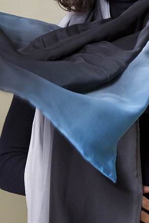 soie couleurs dégradées de bleu de la maison " Soieries Chambutaires" de Chazelles sur Lyon doublée avec un tissu en chaîne trame cachemire noir fin de production Vuitton